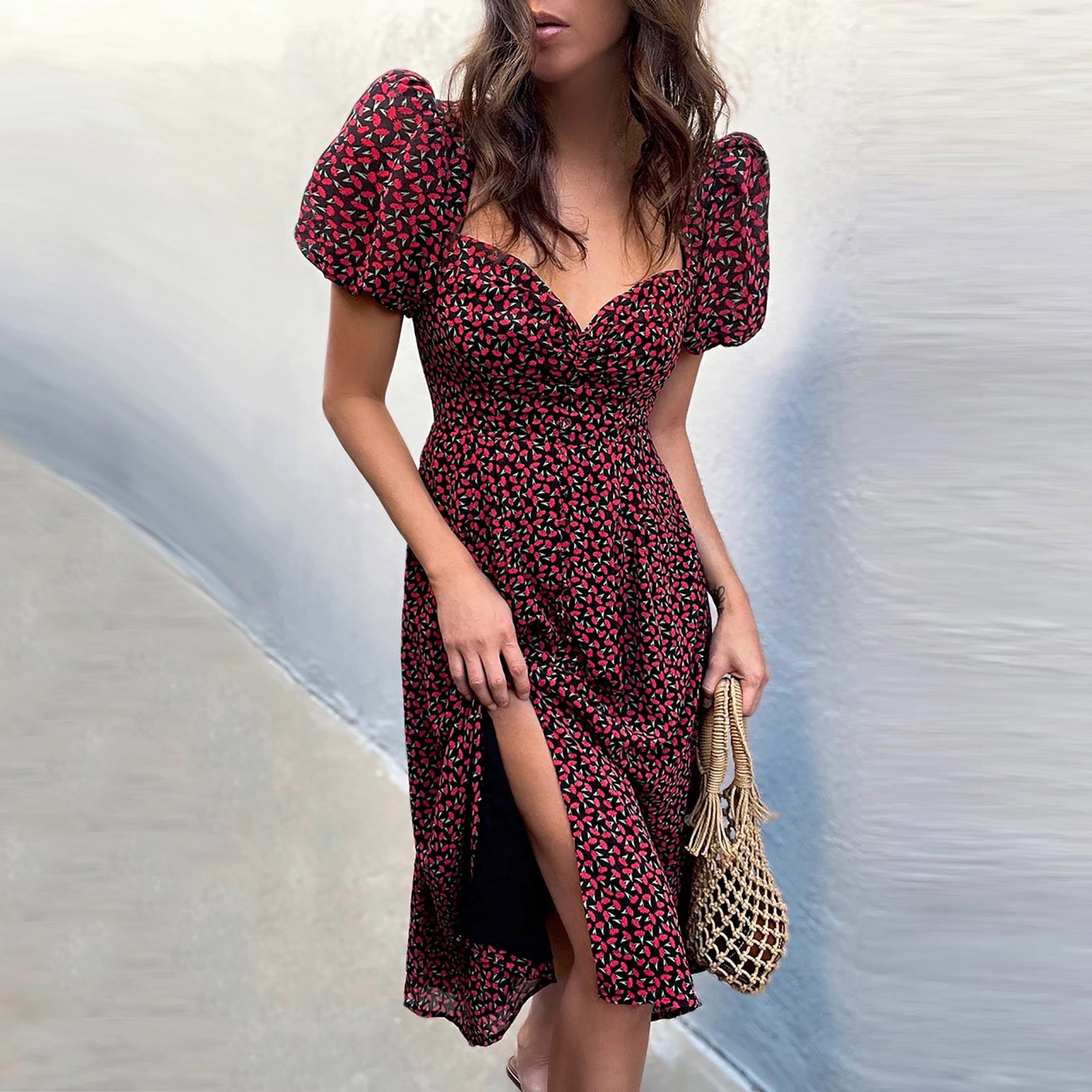 Summer Dresses Casual Floral Printed Dress Puff Sleeve V Neck Slit Mid Length Skirt Summer For Women Plus Size Maxi Prom Walmart Com
